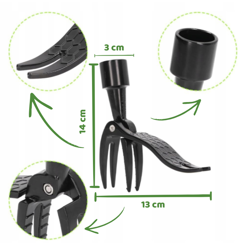 Ząbkowane szczęki wchodzą w strukturę rośliny i utrzymują ją podczas całego procesu wyciągania. Mechanizm dźwigni zwiększa nacisk, dzięki czemu chwast nie wysuwa się w trakcie pracy.